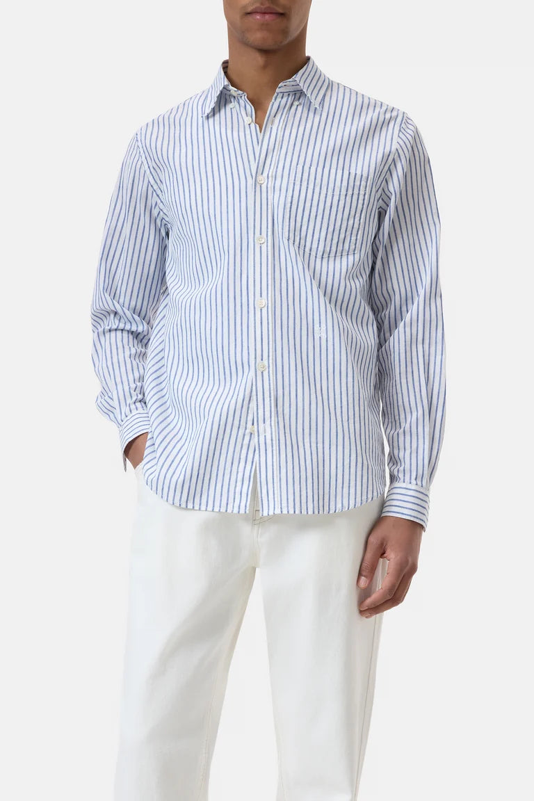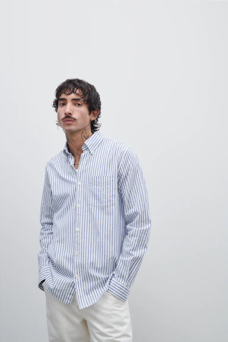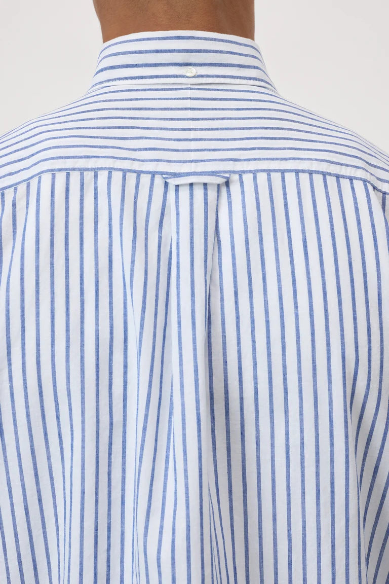 COTTON/LINEN BUTTON DOWN - BLUE STRIPE