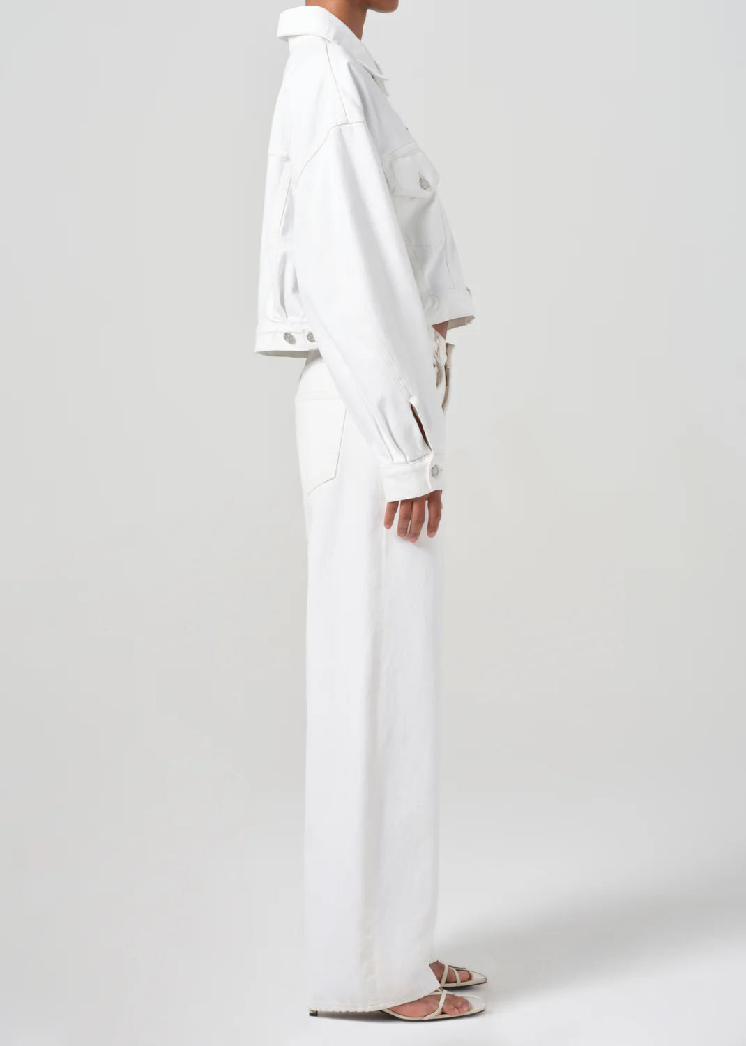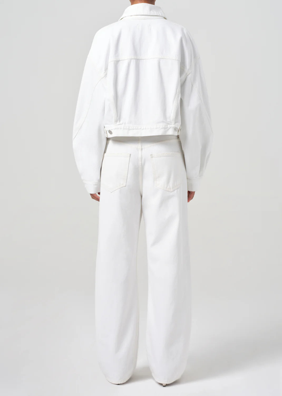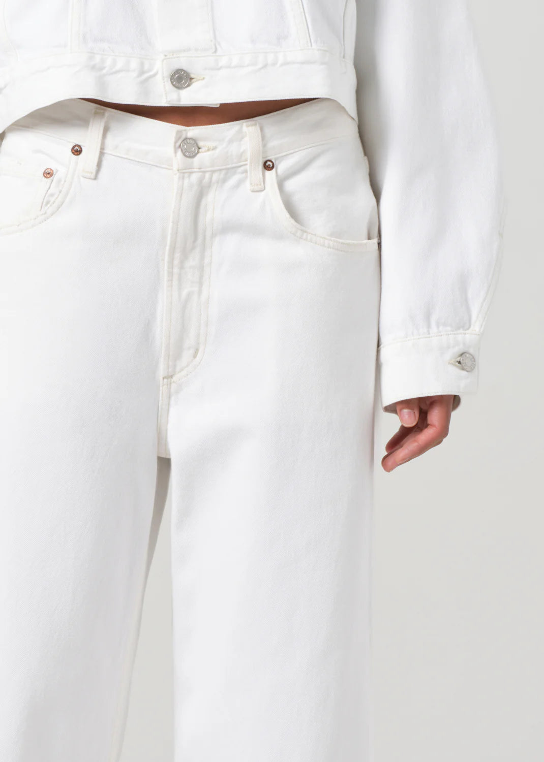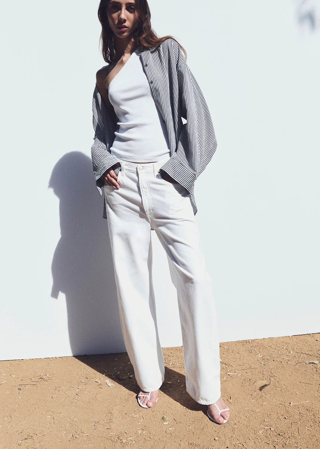 The Low Curve Jean is designed with a mid-rise waist, relaxed fit, and a subtle curved outseam that tapers for a refined yet effortless silhouette. Crafted from clean white, non-stretch denim in regenerative cotton, it offers a crisp, structured feel with a modern edge. Style with tonal layers for a fresh monochrome statement or pair with relaxed tailoring for a balanced, minimal look.