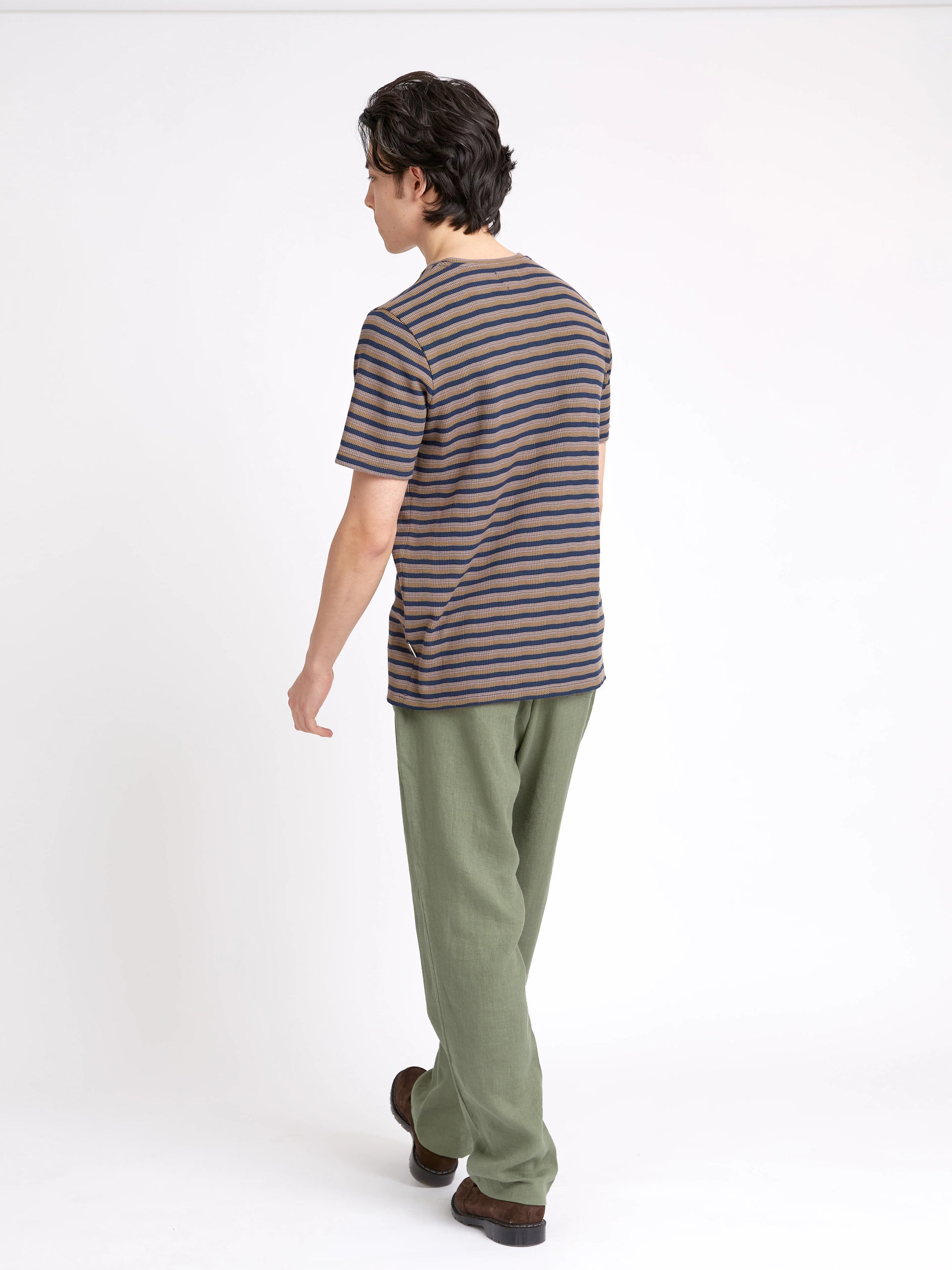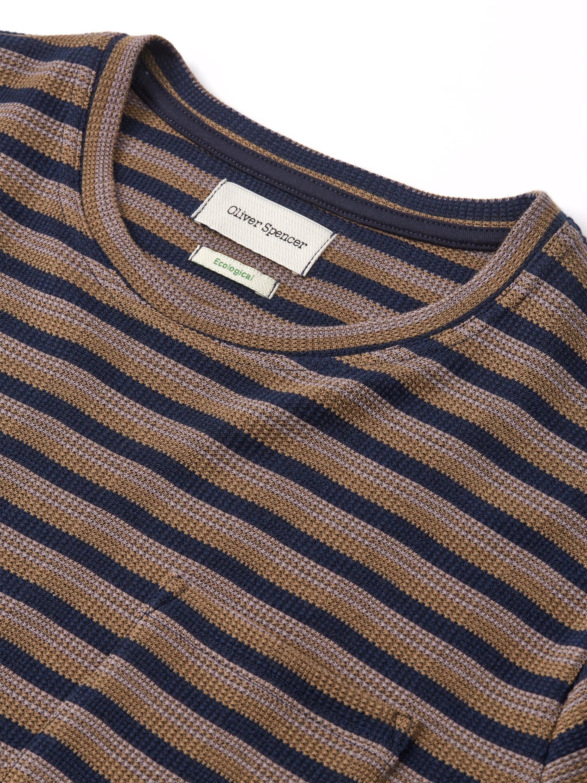 Crafted from a cotton and modal blend, Oli's t-shirt is silky soft to the touch, and makes for a beautiful spring tee. This striped version pairs well with khaki chinos and dark denim.