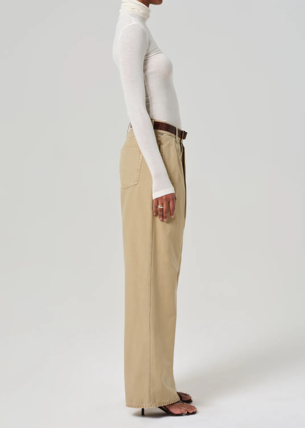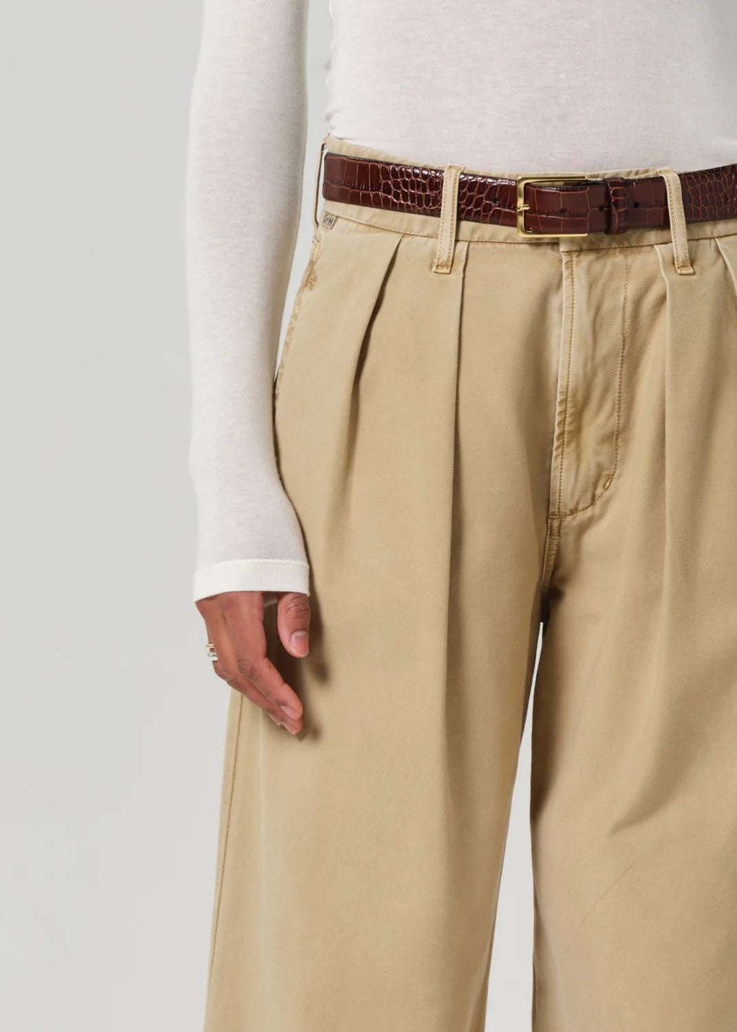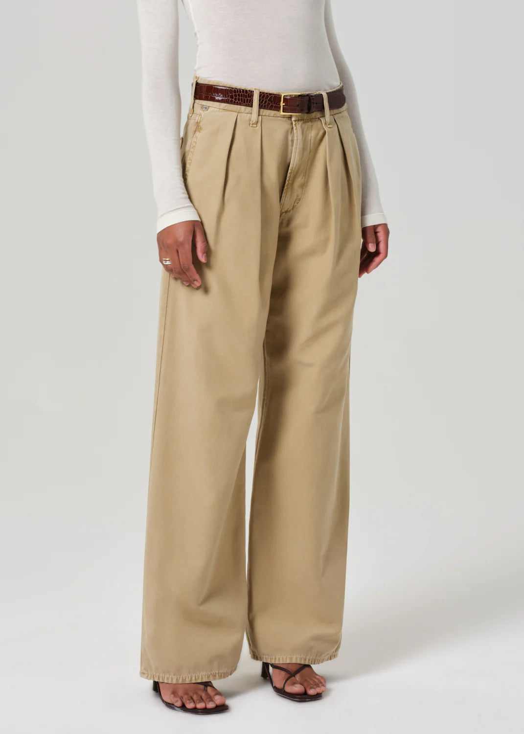 Looks Like: Medium khaki trouser pant with pleat detailing
