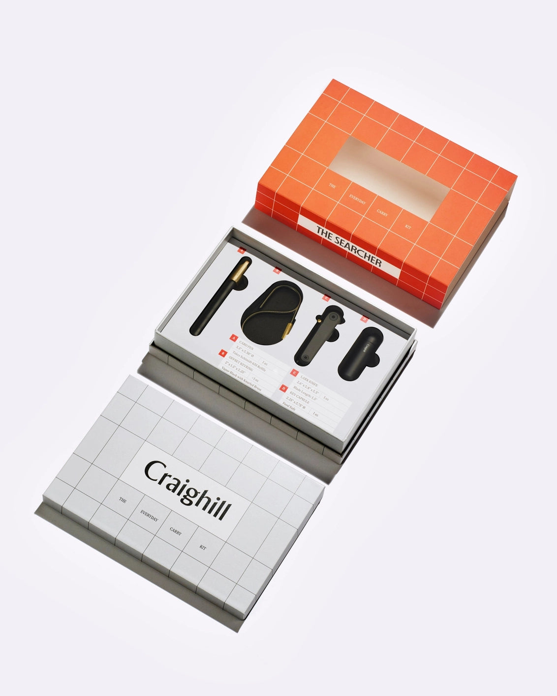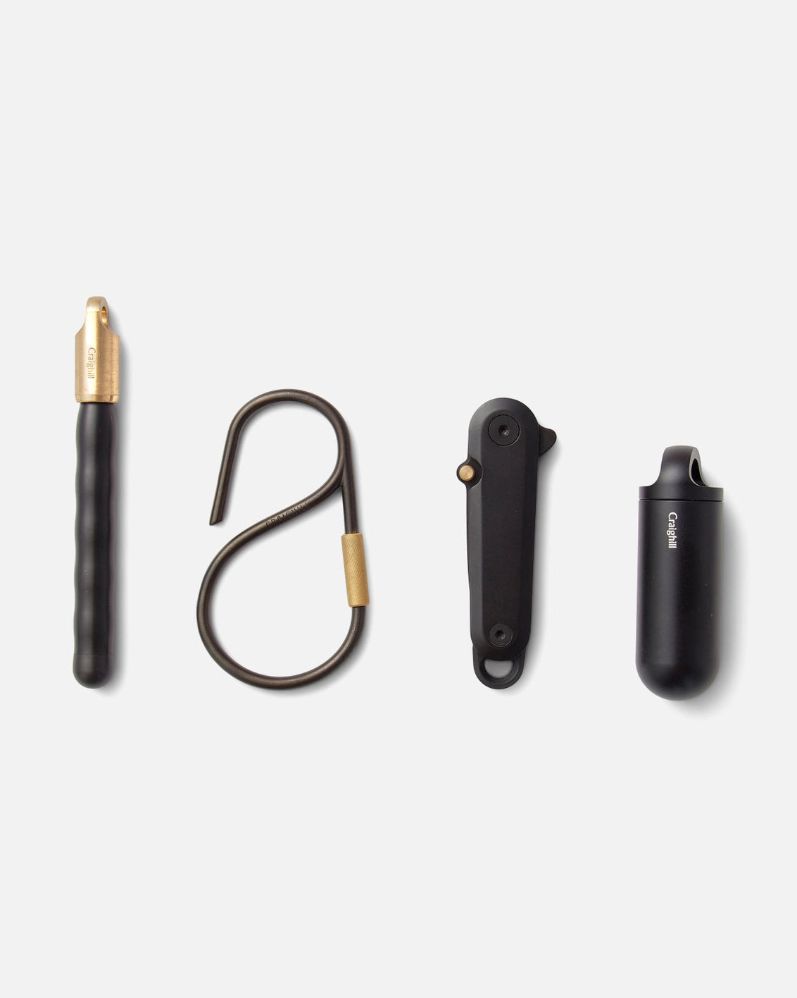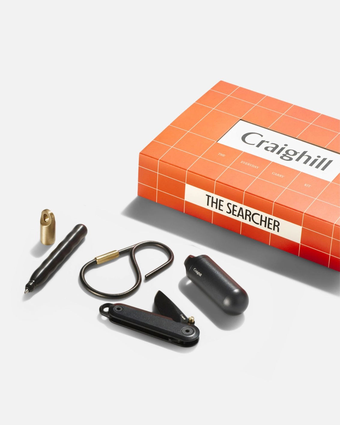 The Searcher brings together four of our most useful daily carry items into one smart set. The Lark Knife makes quick work of any package that needs opening. The Caro Pen is there when you need to capture a thought on the fly. The Key Capsule keeps your most important pills close at hand. And the Offset Keyring pulls it all together.